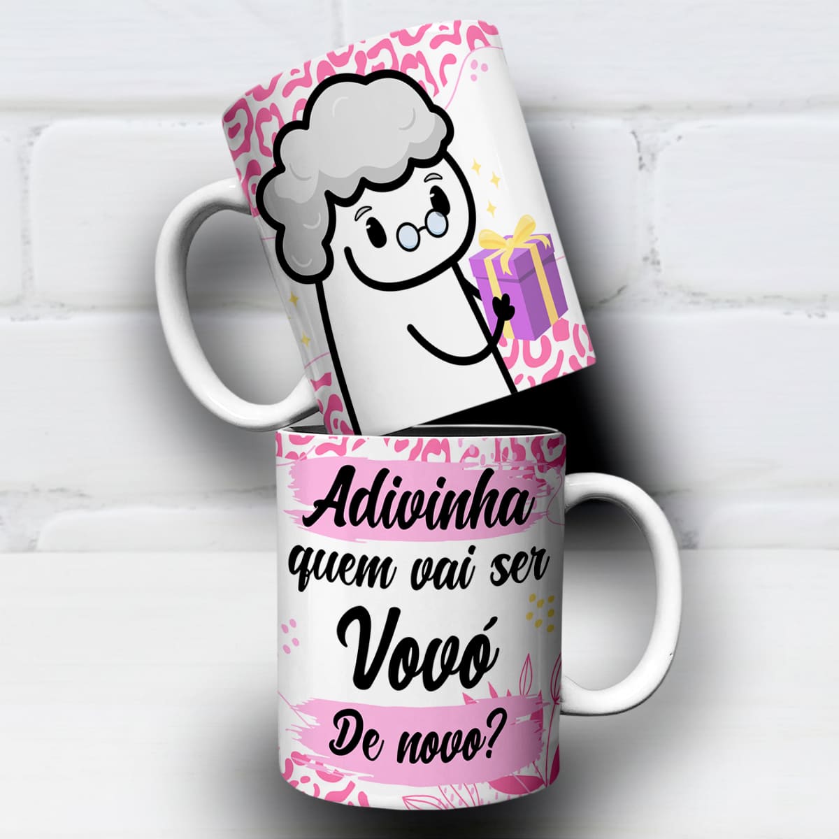 Diferente de estampas que dependem de datas comemorativas específicas, a arte para caneca adivinha quem vai ser vovó de novo está ligada a um momento da vida que acontece durante todo o ano.