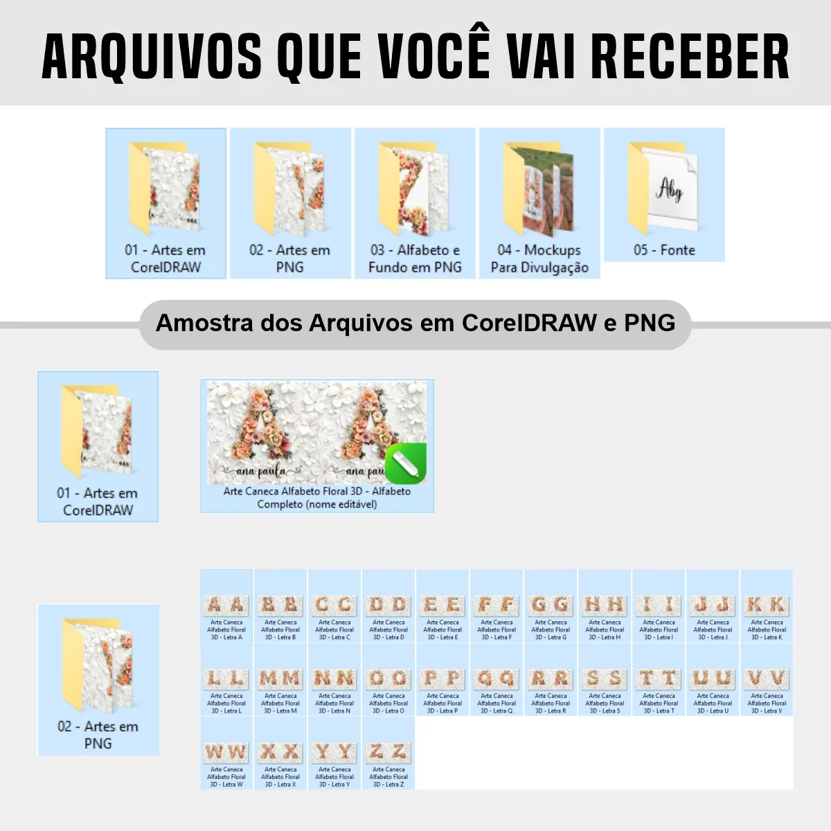 Quem atua com sublimação sabe que produtos personalizados com nomes têm alta saída durante todo o ano. A arte para caneca alfabeto floral com inicial 3d permite criar peças exclusivas rapidamente, sem a necessidade de desenvolver layouts do zero.