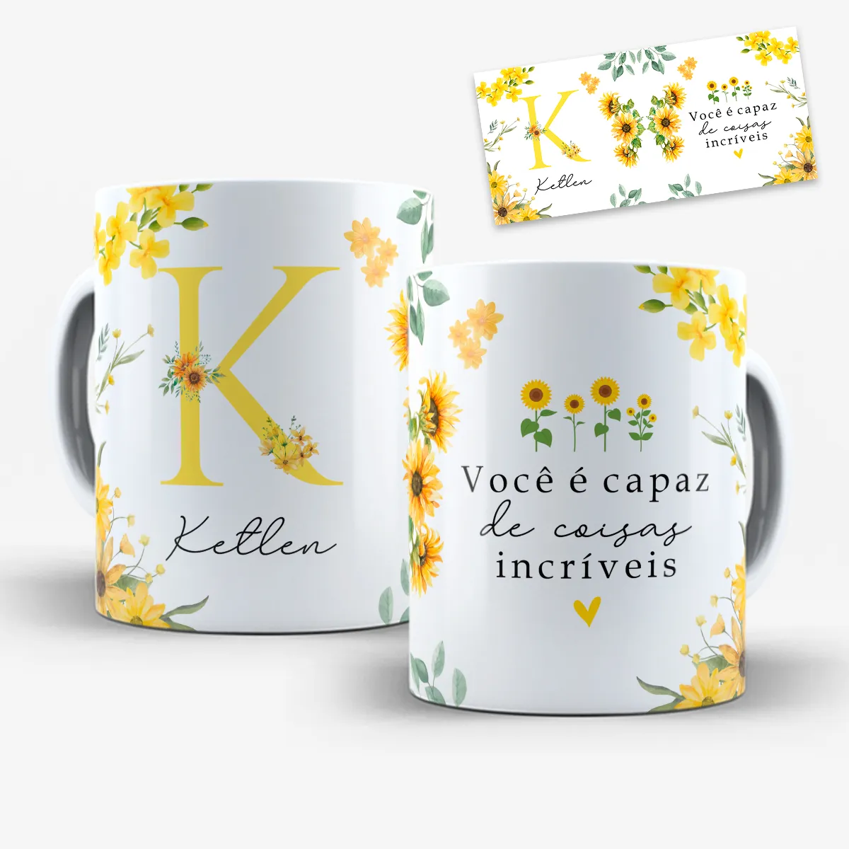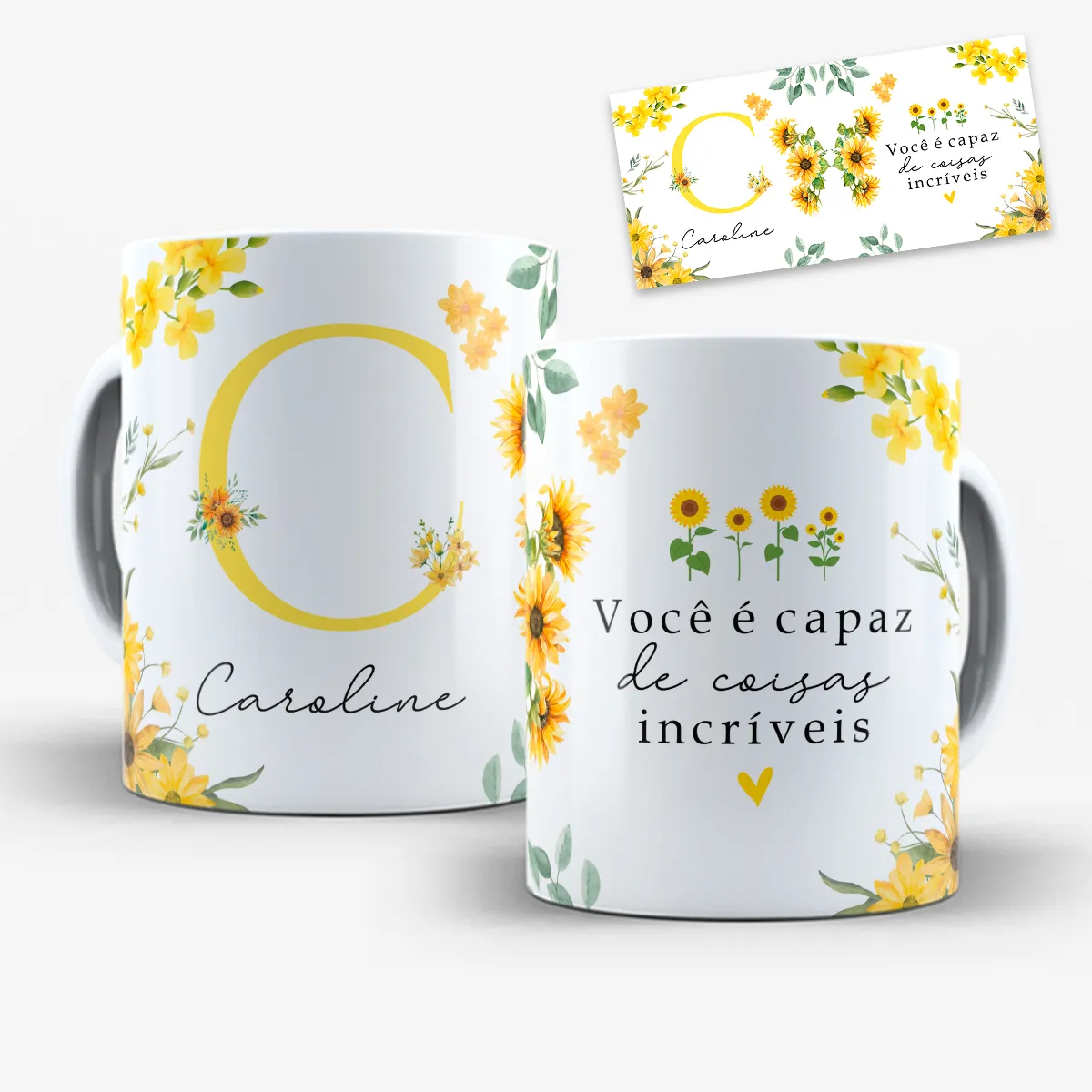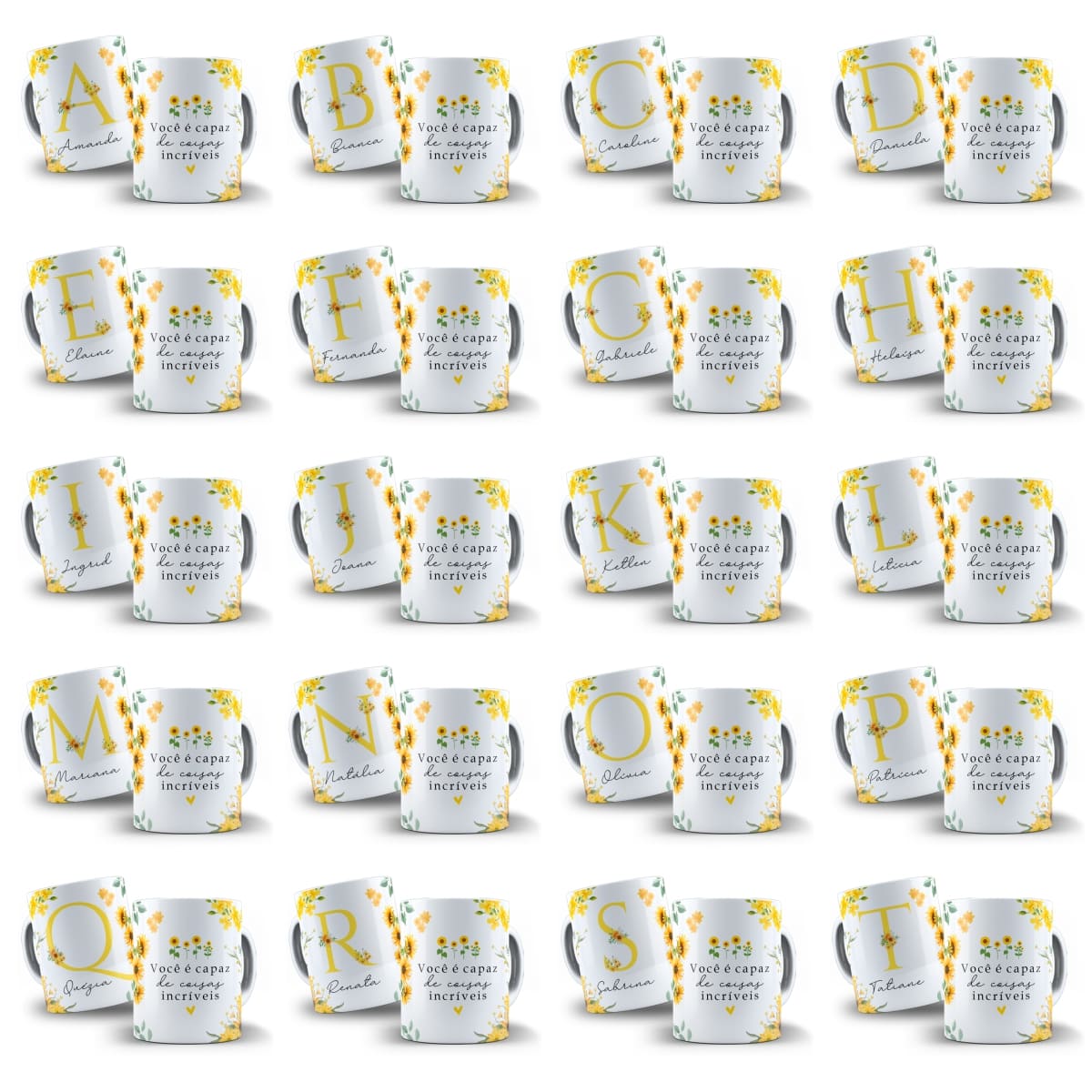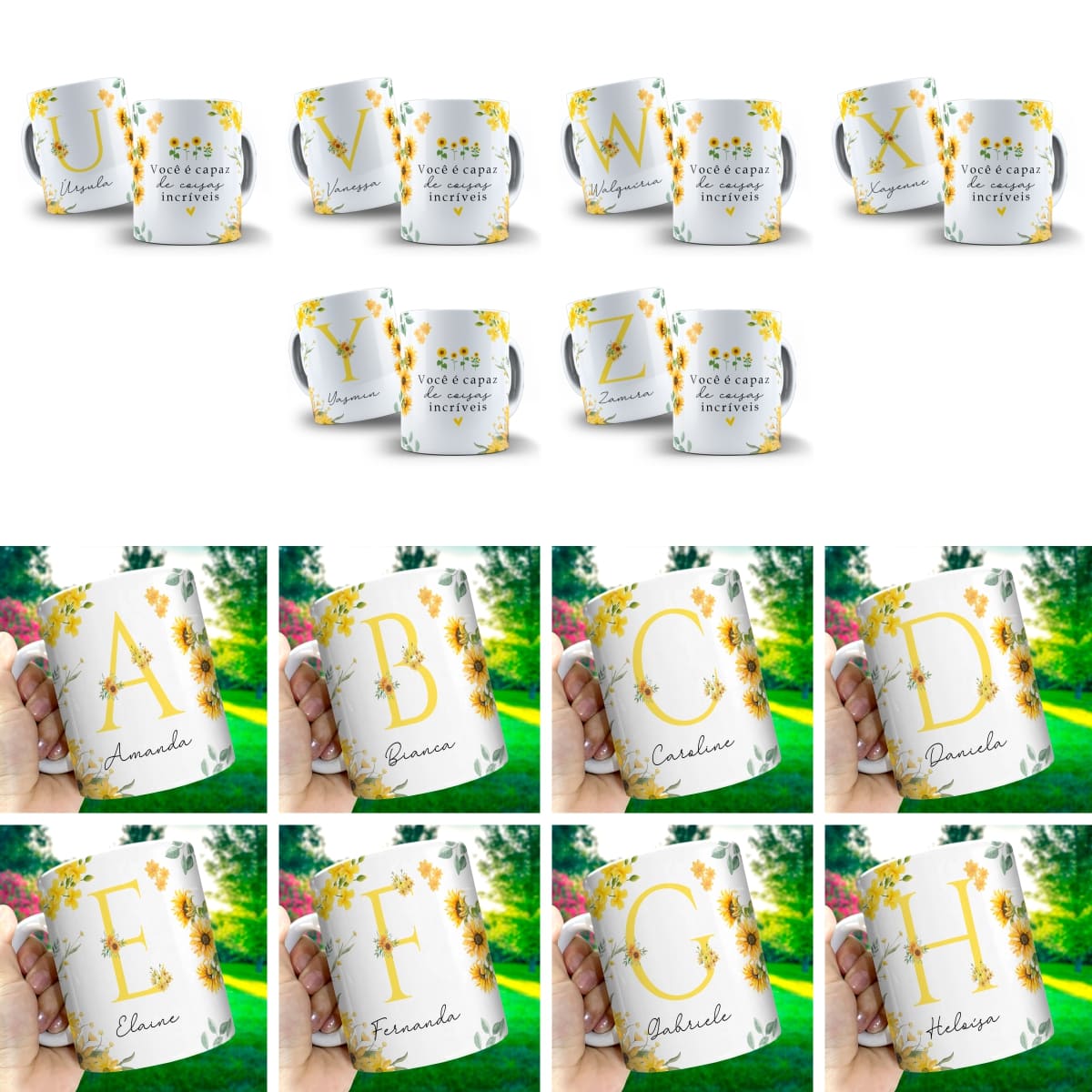 Trabalhar com variações da própria arte para caneca alfabeto floral girassol também abre espaço para kits promocionais, combos e campanhas temáticas, fortalecendo sua presença no mercado.