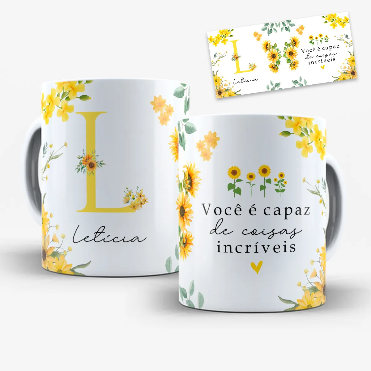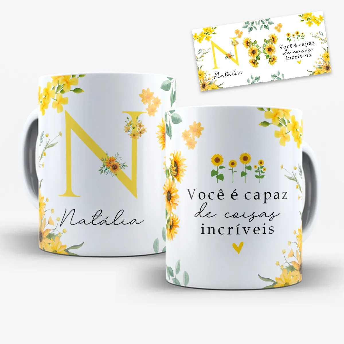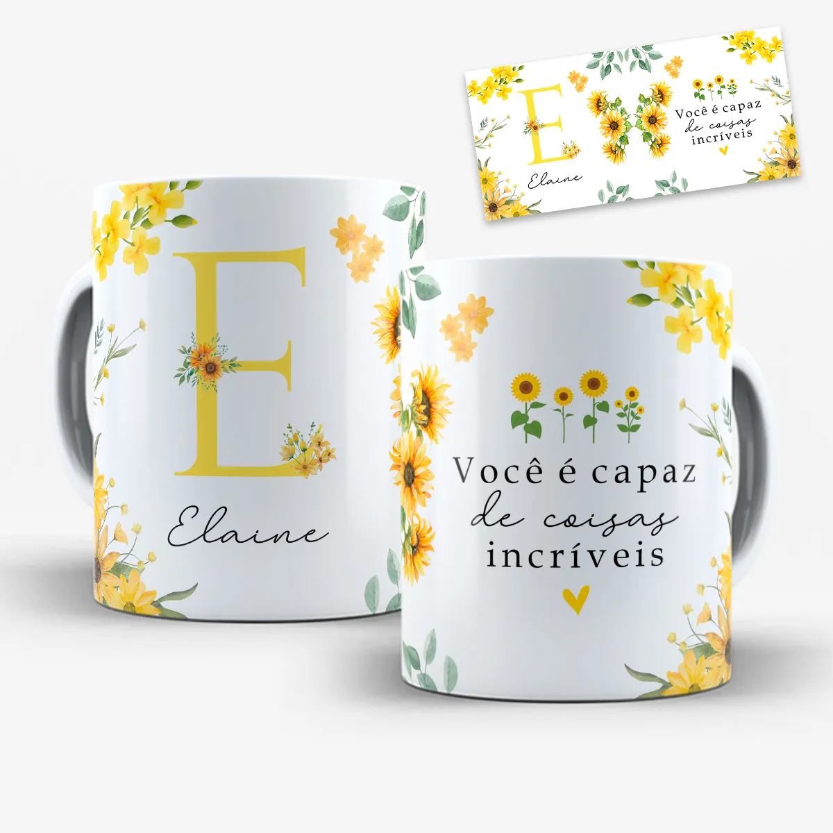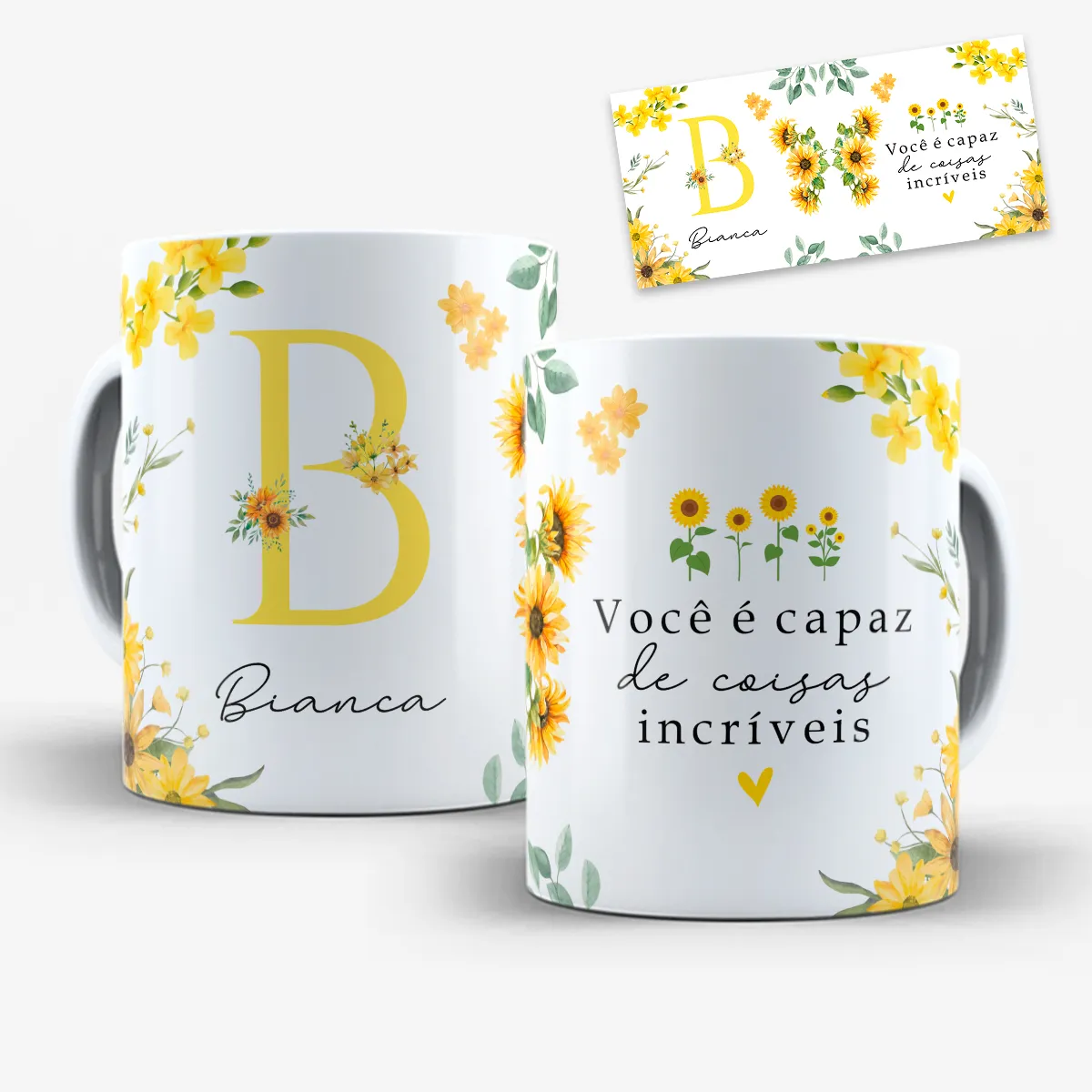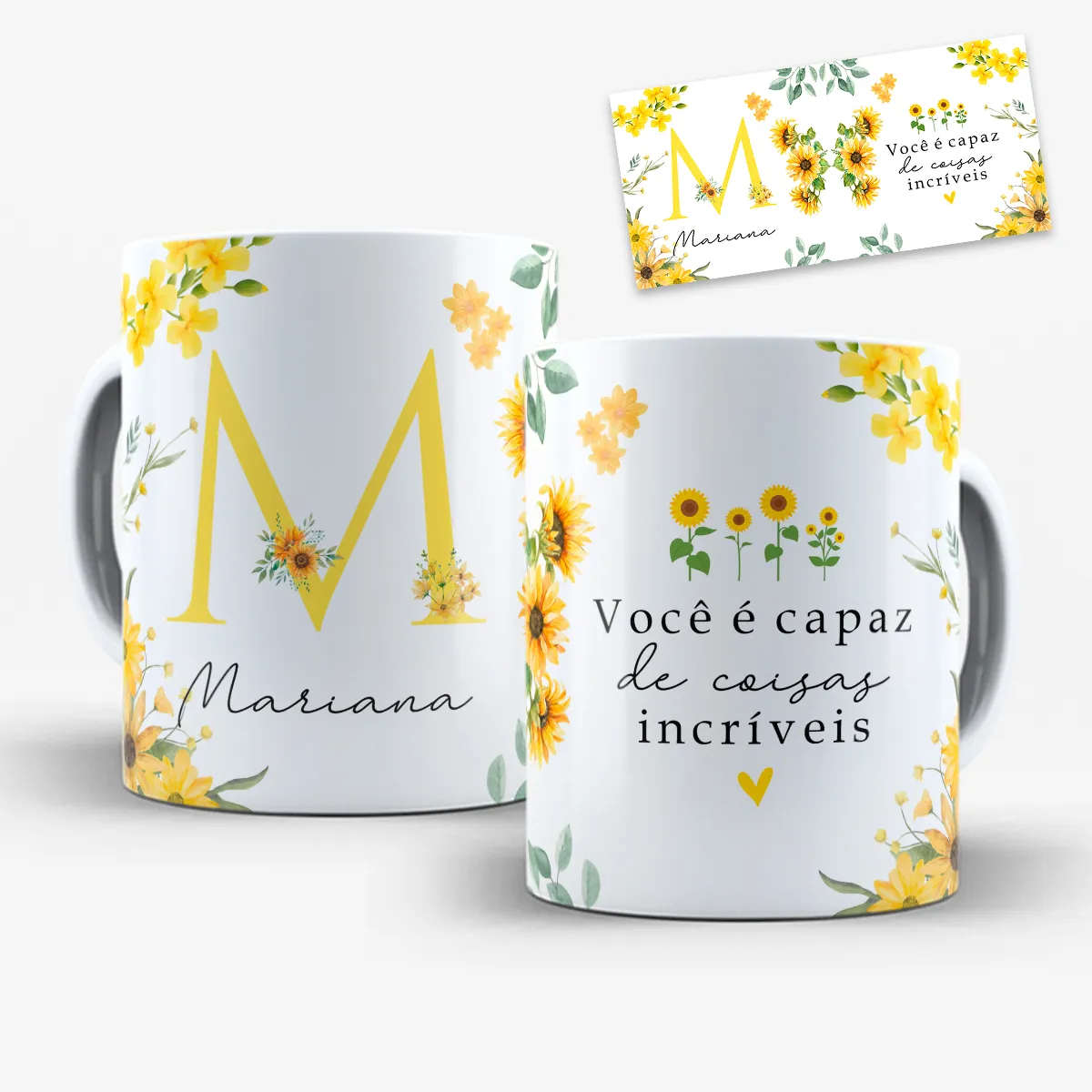 Trabalhar com variações da própria arte para caneca alfabeto floral girassol também abre espaço para kits promocionais, combos e campanhas temáticas, fortalecendo sua presença no mercado.