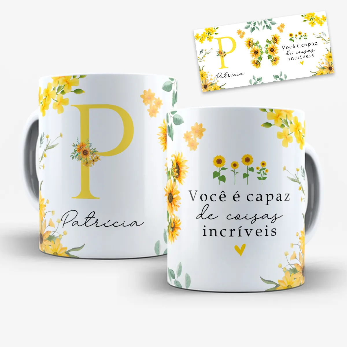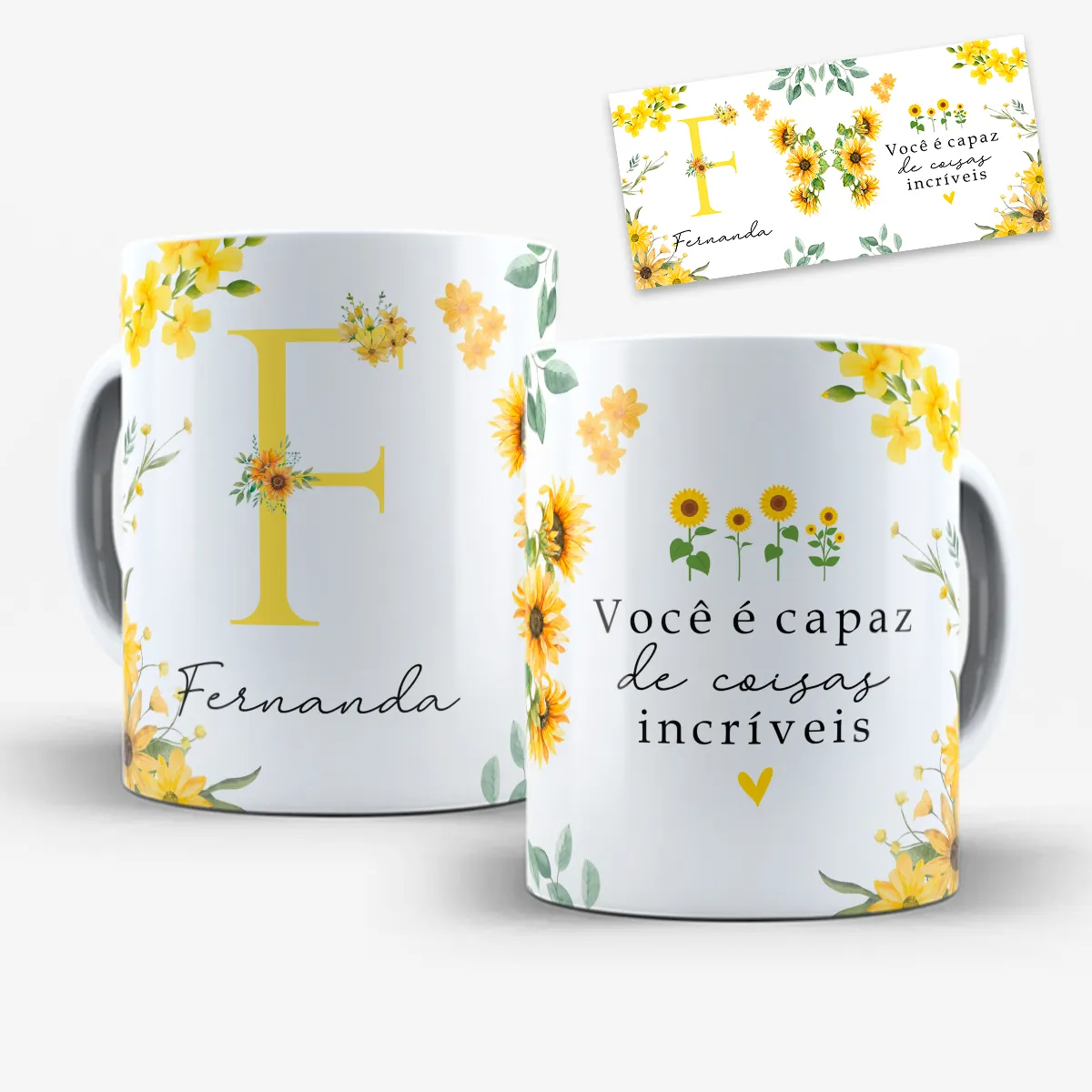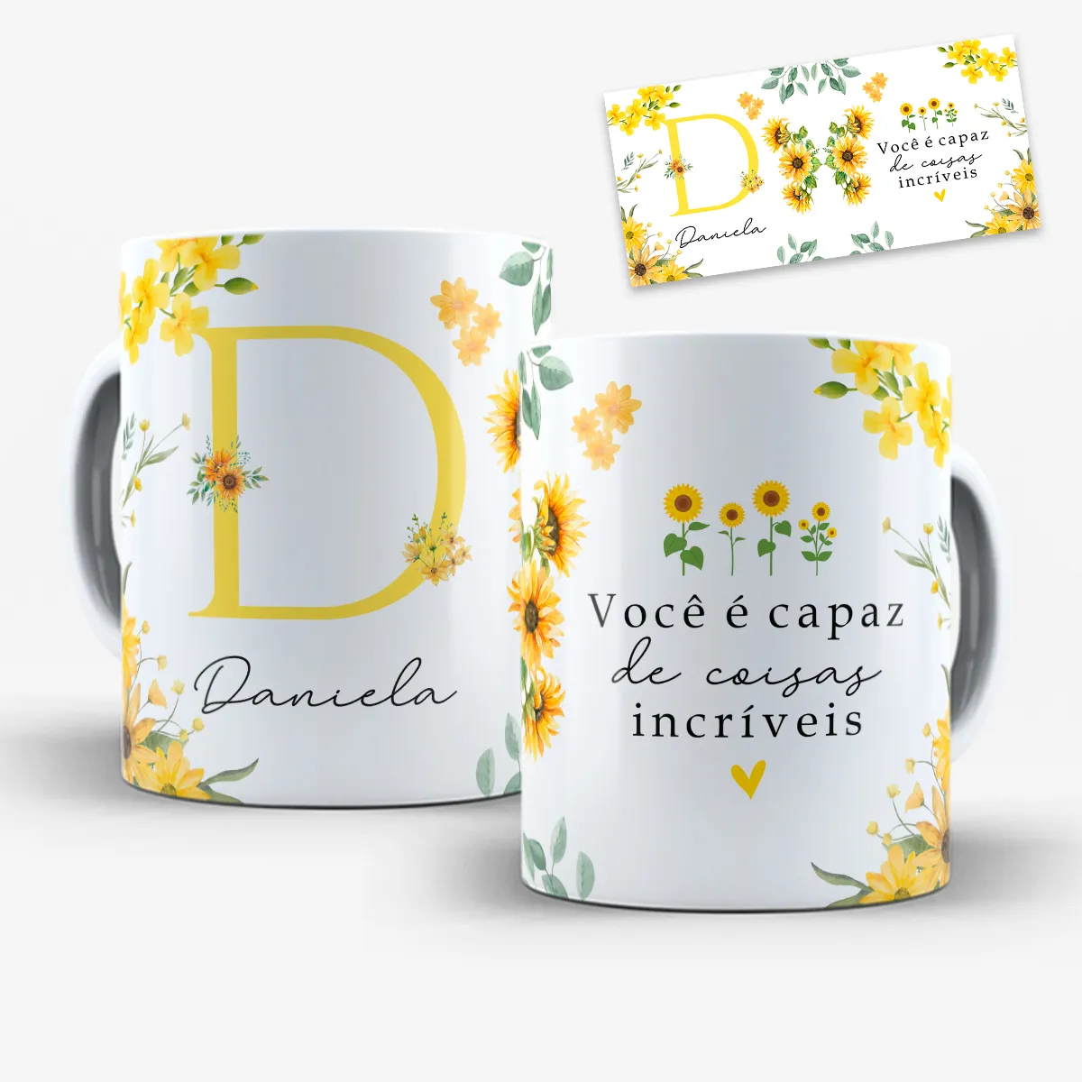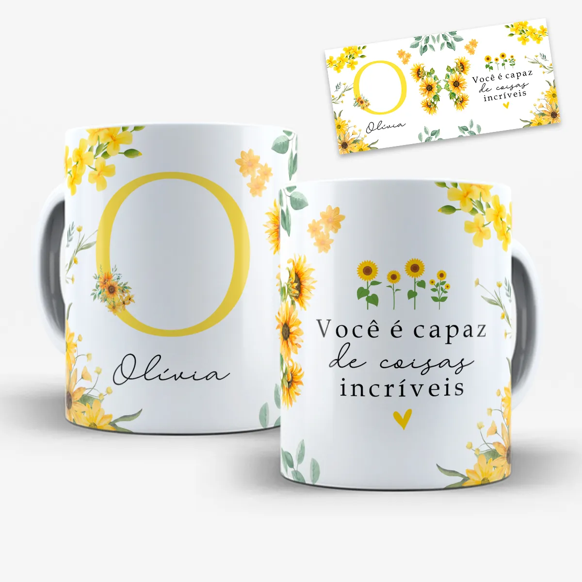 Trabalhar com variações da própria arte para caneca alfabeto floral girassol também abre espaço para kits promocionais, combos e campanhas temáticas, fortalecendo sua presença no mercado.