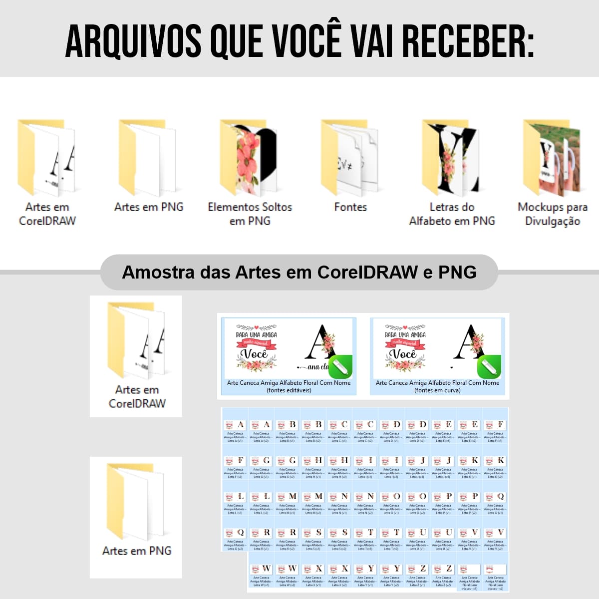 – Artes do alfabeto completo editáveis em CorelDRAW (para você alterar o que quiser – Flores em PNG)