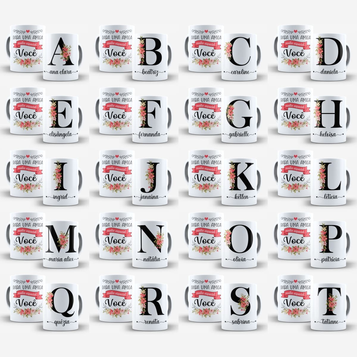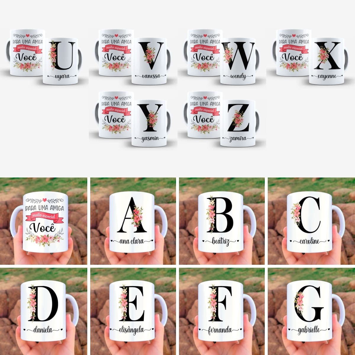 Arte Para Caneca Amigas Alfabeto Floral Com Nome