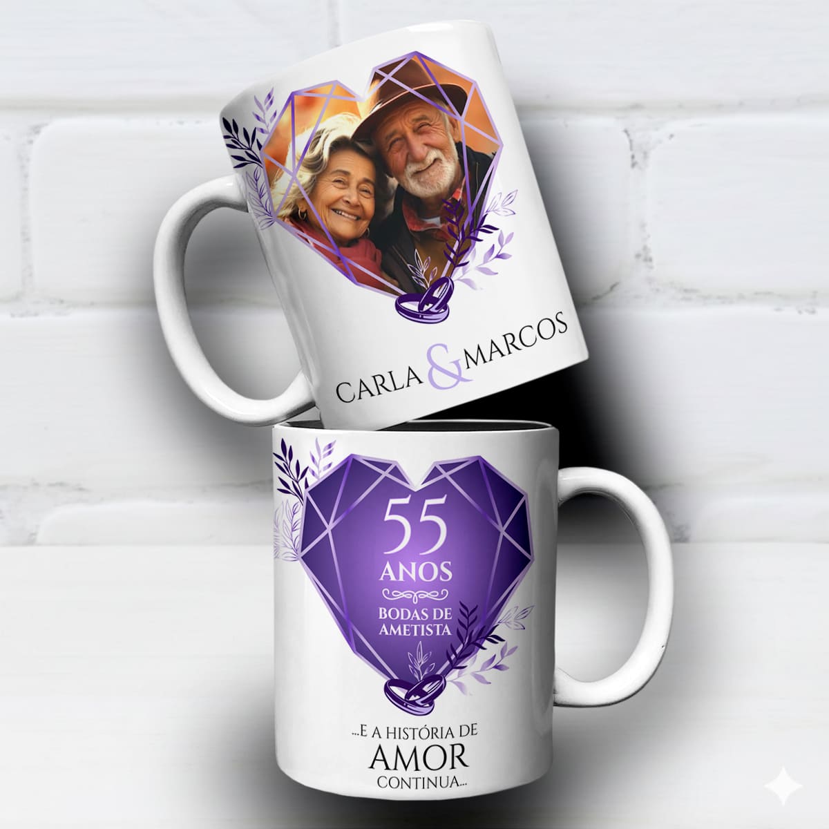Arte Para Caneca Bodas de Ametista 55 anos de Casados Com Foto | PNG e CDR Editável