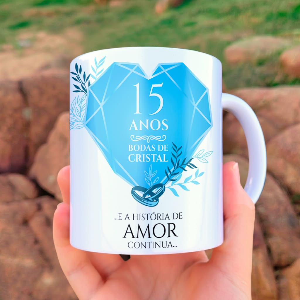 É exatamente aí que essa arte de caneca bodas de cristal entra no seu portfólio.