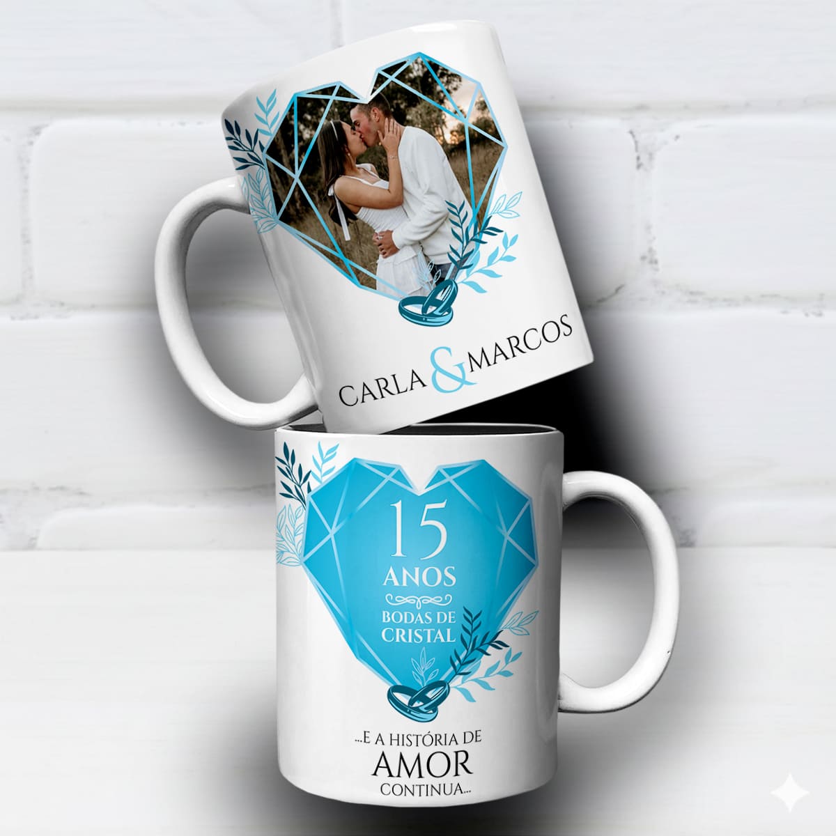 Arte Para Caneca Bodas de Cristal 15 Anos de Casados Com Foto | PNG e CDR Editável