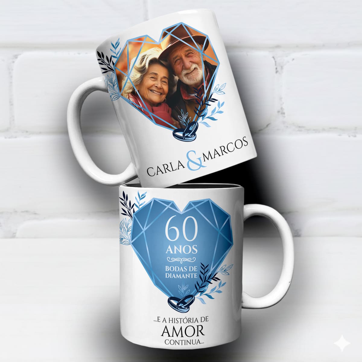 Arte Para Caneca Bodas de Diamante 60 Anos de Casados Com Foto – Arquivo Digital Sublimação