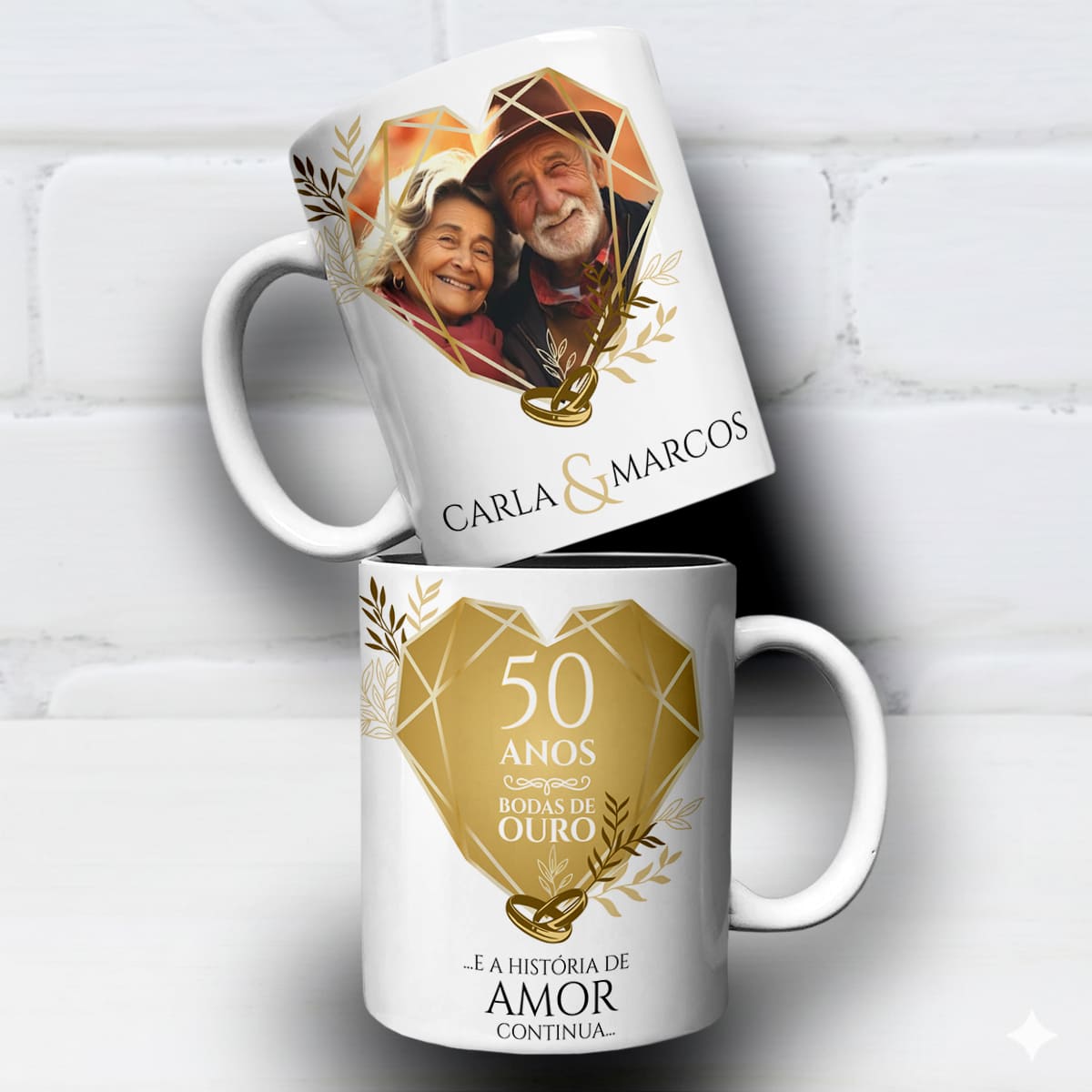 É exatamente aí que essa arte de caneca bodas de ouro entra no seu portfólio.