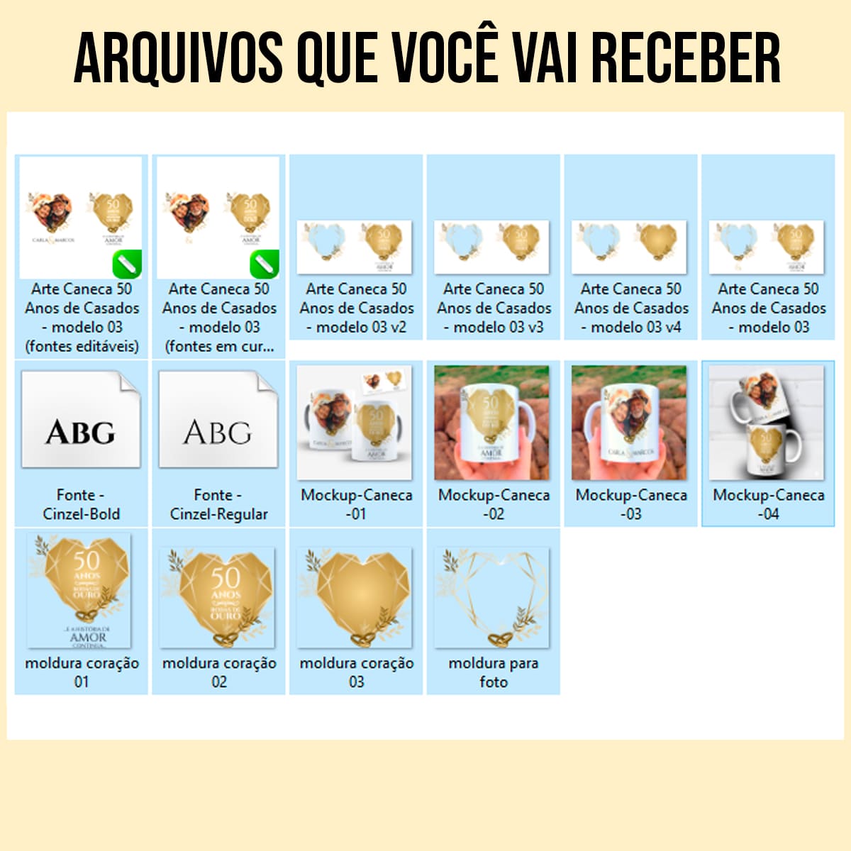 Então garanta já a sua arte para caneca bodas de ouro e amplie seu catálogo com uma peça que realmente converte.