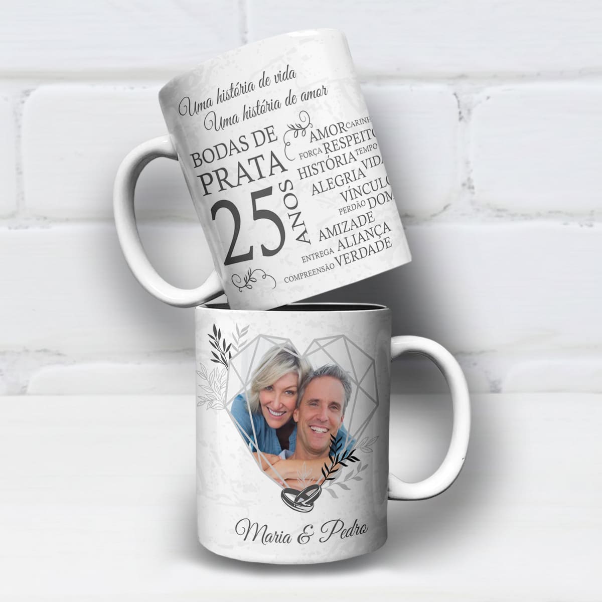 Arte Para Caneca Bodas de Prata 25 Anos de Casados Com Foto e Nomes – Arquivo Digital Sublimação