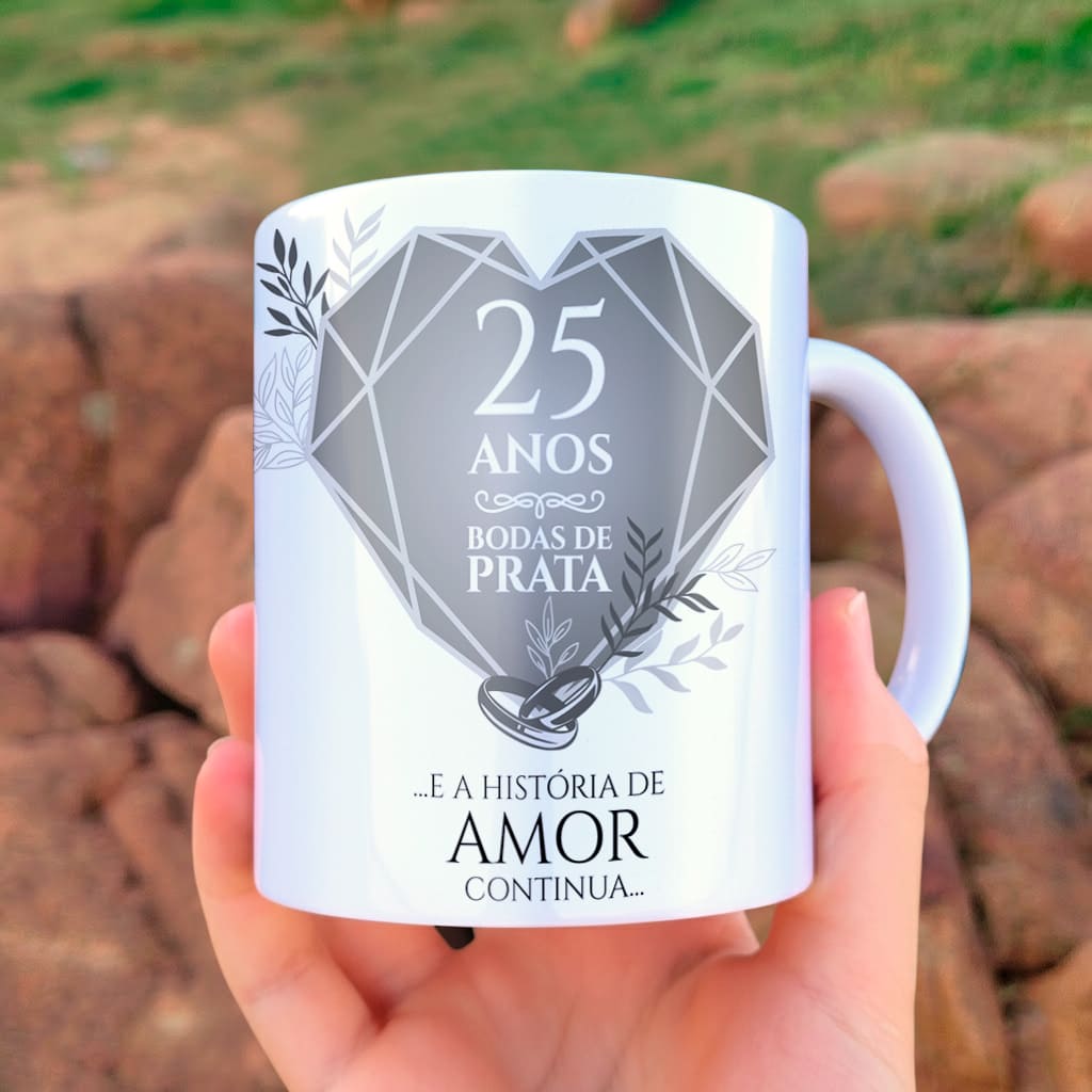 É exatamente aí que essa arte de caneca bodas de prata entra no seu portfólio.