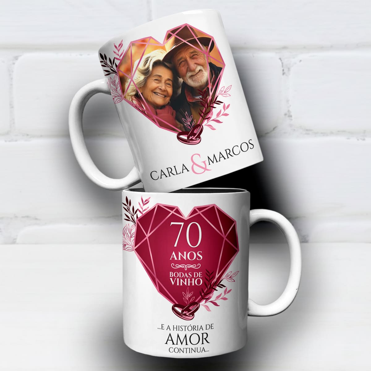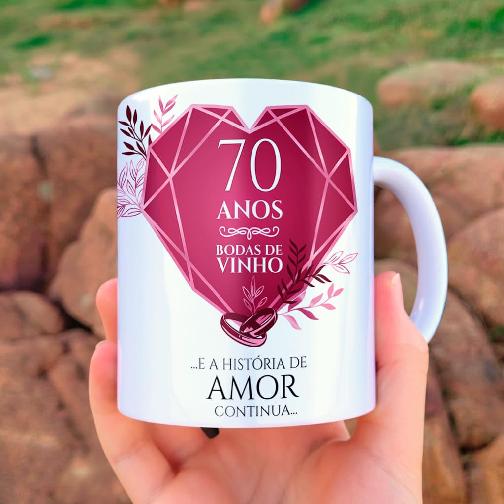 Arte Para Caneca Bodas de vinho 70 Anos de Casados Com Foto | PNG e CDR Editável