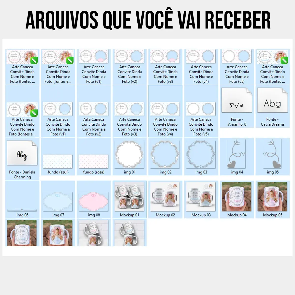- Mockups de cada arte em 3 versões para divulgação nas redes sociais (conforme fotos do anúncio)