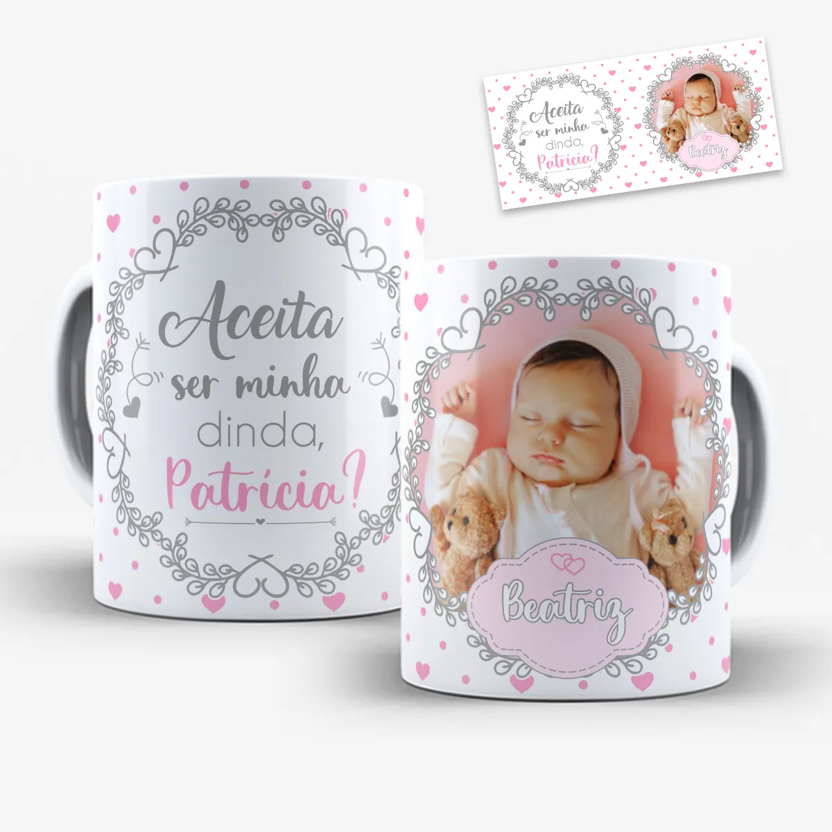 Com a arte para caneca convite dindo e dinda com nome e foto, você passa a atender esse público de forma mais profissional, oferecendo um produto que une estética, personalização e significado.
