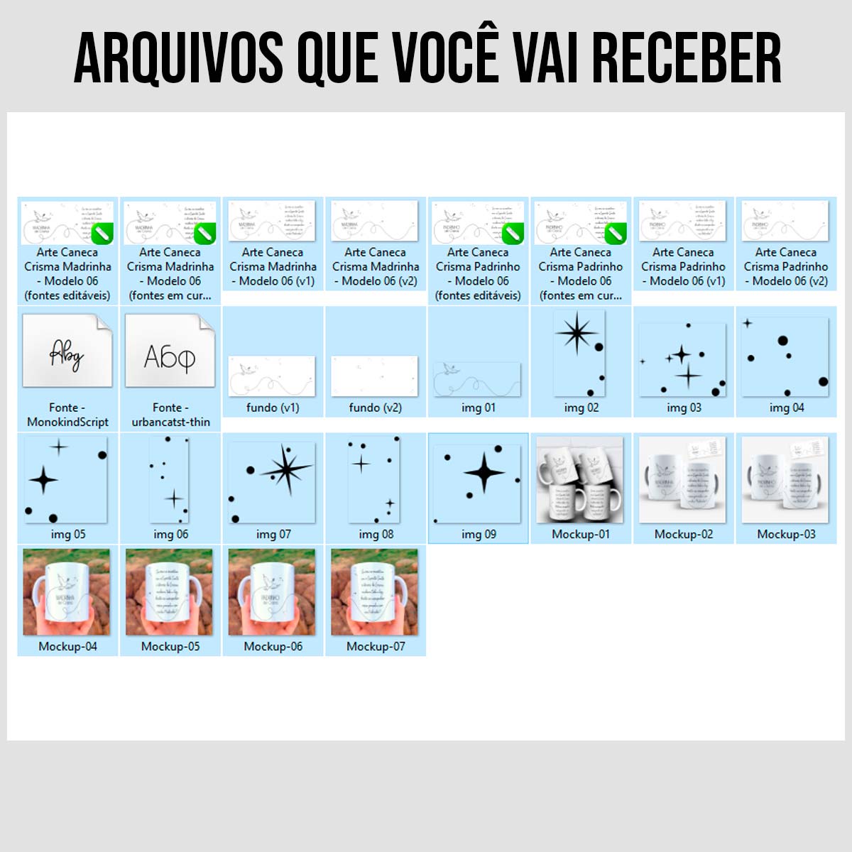 – Mockups de cada arte em 3 versões para divulgação nas redes sociais (conforme fotos do anúncio)