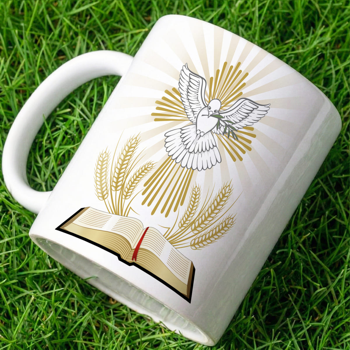 Diferenciais da arte para caneca crisma espírito santo pomba branca