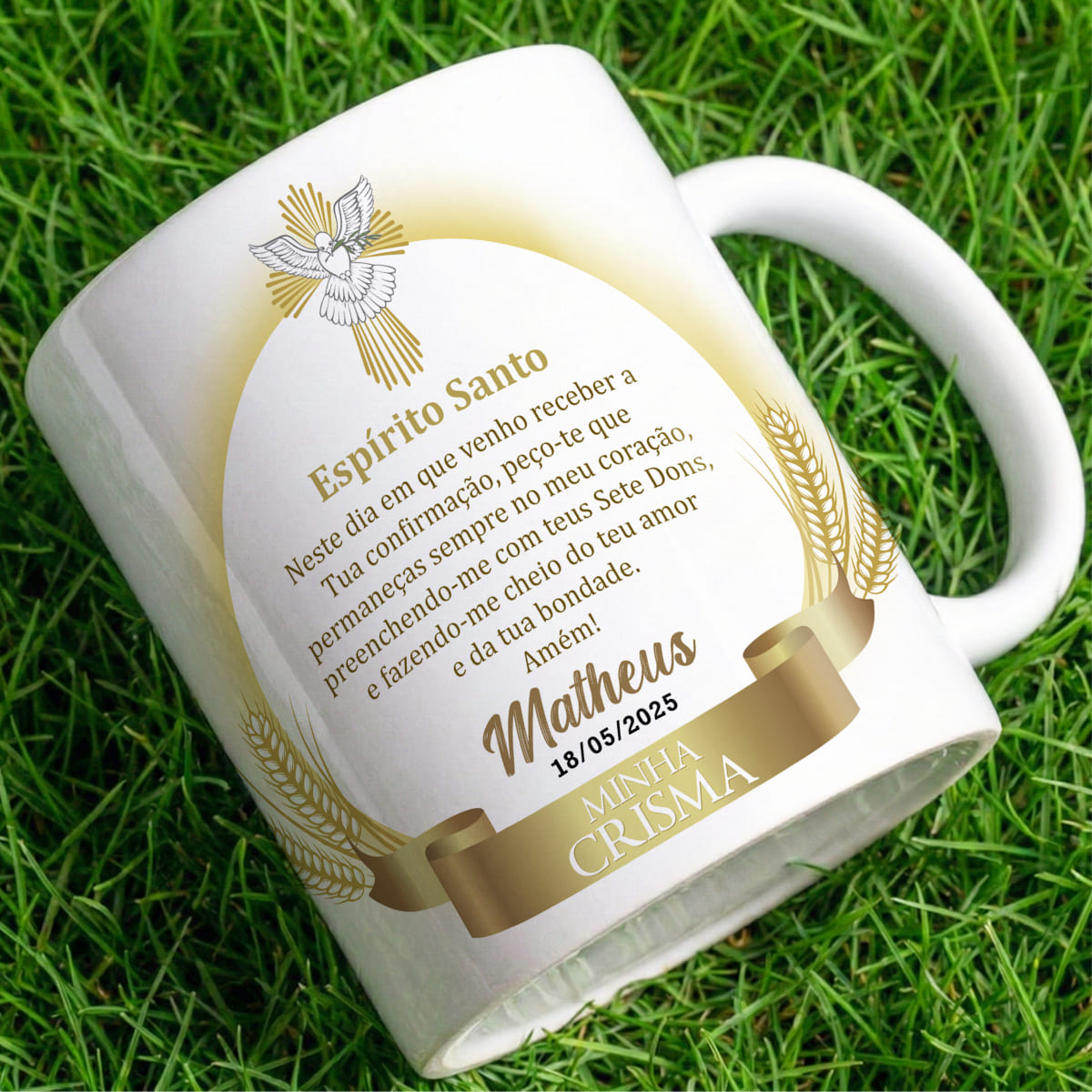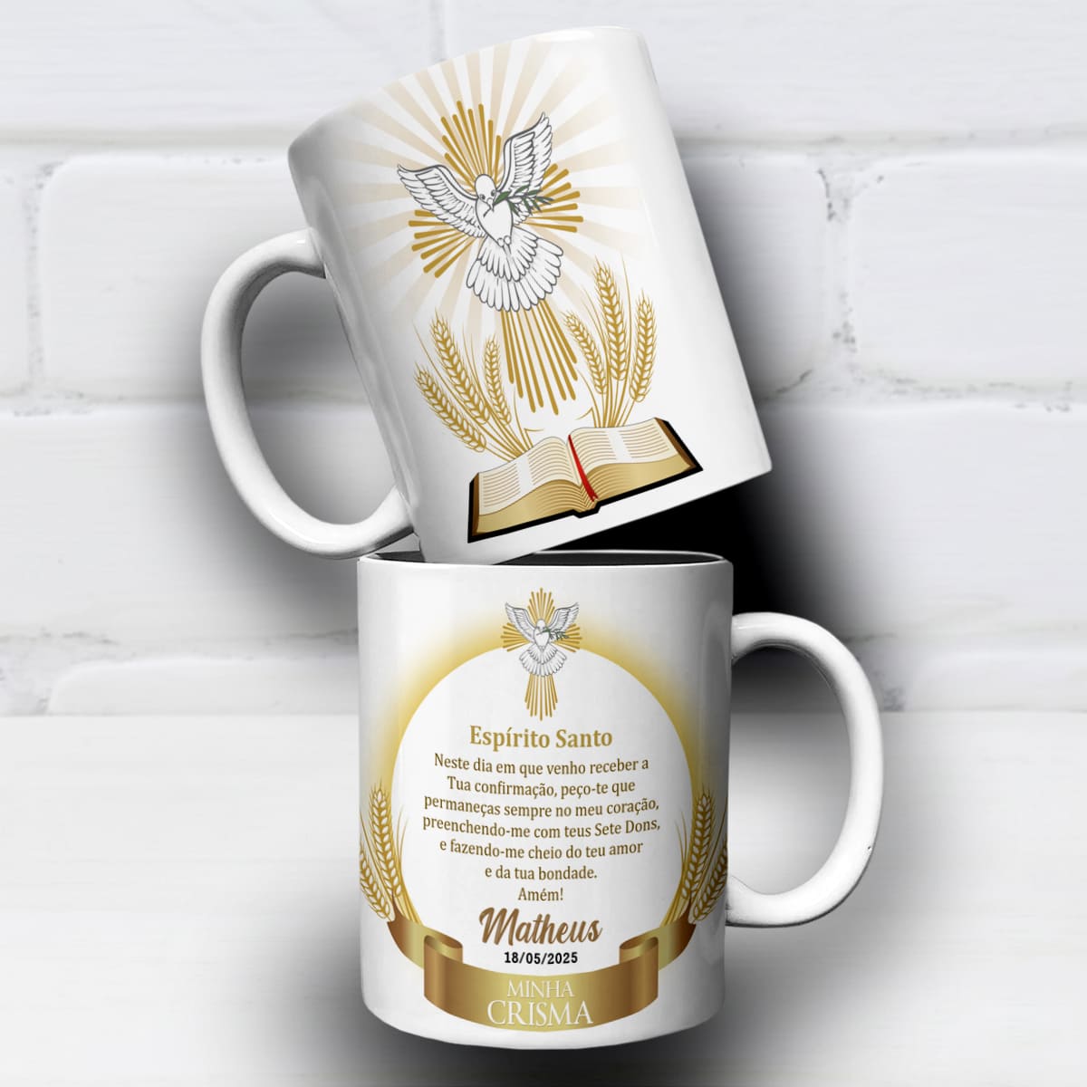 A arte para caneca crisma espírito santo pomba branca foi criada com atenção aos detalhes que realmente impactam na decisão de compra. Os elementos dourados trazem sofisticação, enquanto a composição central transmite espiritualidade e emoção.