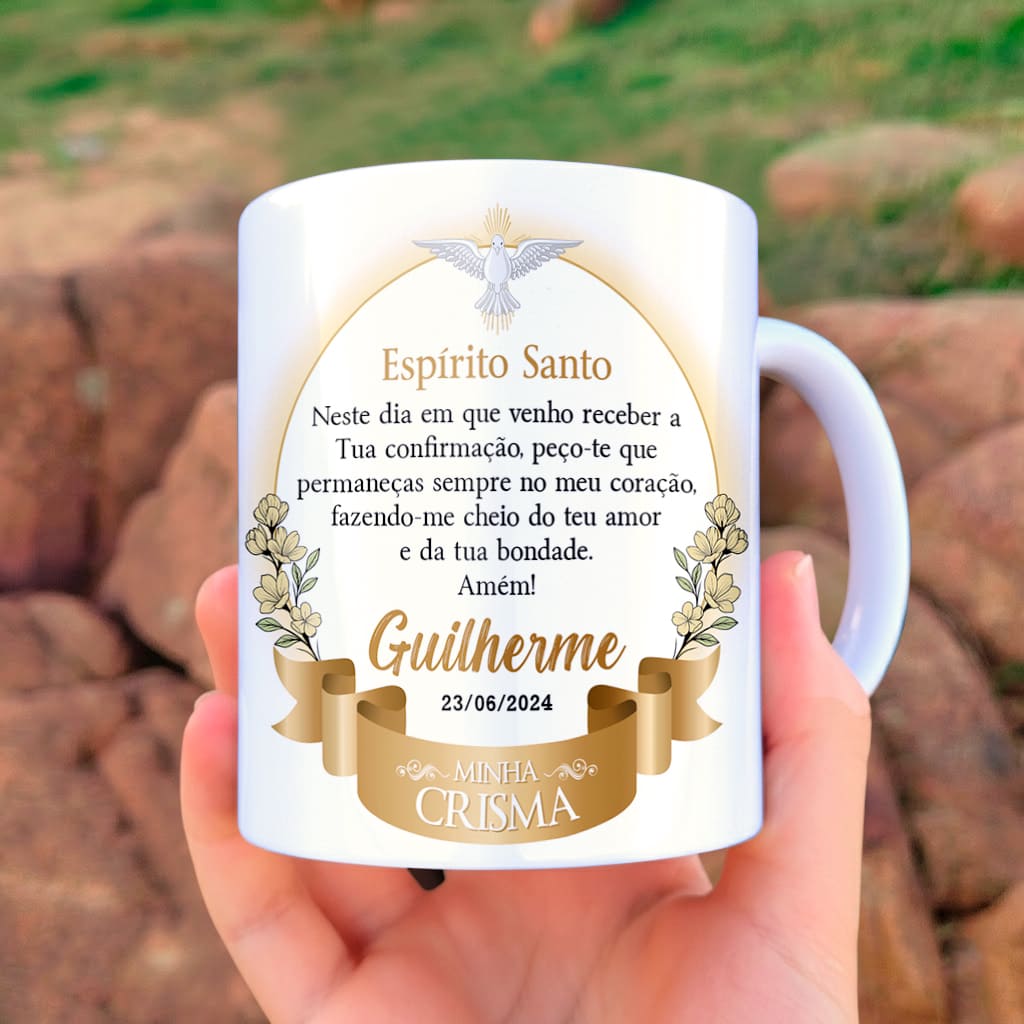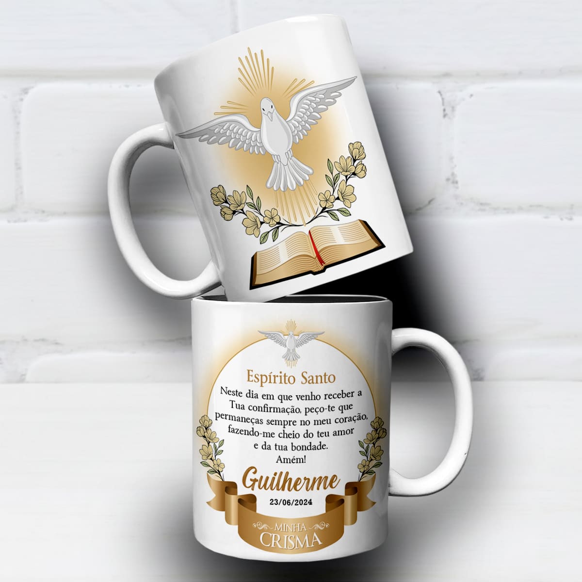 Ao incluir a arte para caneca crisma espirito santo em seu catálogo, você passa a atender um público que busca personalização com nome e data, o que agrega valor e justifica preços mais competitivos. Personalização aumenta percepção de exclusividade e reduz comparação por preço.
