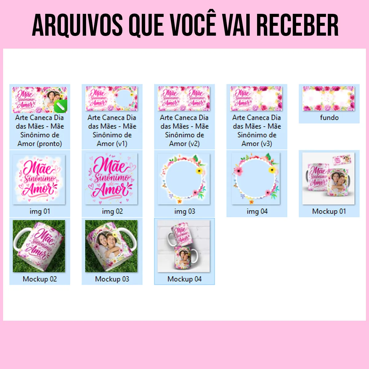 Essa arte foi pensada exatamente para isso. Ao utilizar a arte para caneca dia das mães mãe sinônimo de amor, você agrega significado ao produto final, facilitando a decisão de compra do seu cliente e aumentando seu ticket médio com personalizações mais atrativas.