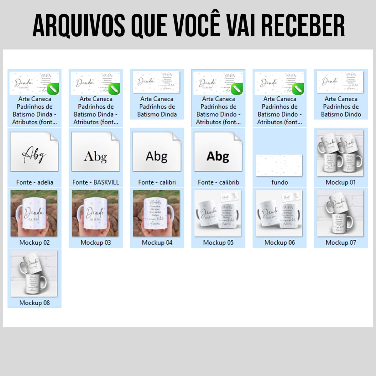 O que você recebe ao adquirir a arte para caneca dindo e dinda atributos