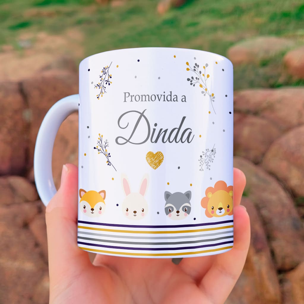 Arte Para Caneca Dindo e Dinda Batizado Bichinhos Safari (2 Versões) – Arquivo Digital Sublimação
