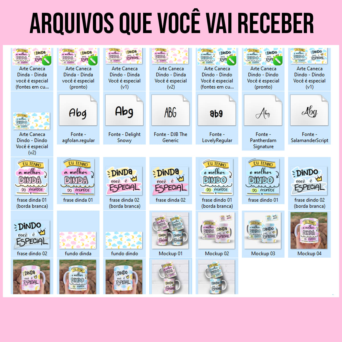 Além disso, arquivos preparados especificamente para sublimação facilitam todo o processo de produção. A arte para caneca dindo e dinda você é especial foi organizada para que o profissional consiga aplicar rapidamente em canecas, mantendo qualidade de impressão e resultado visual atrativo.