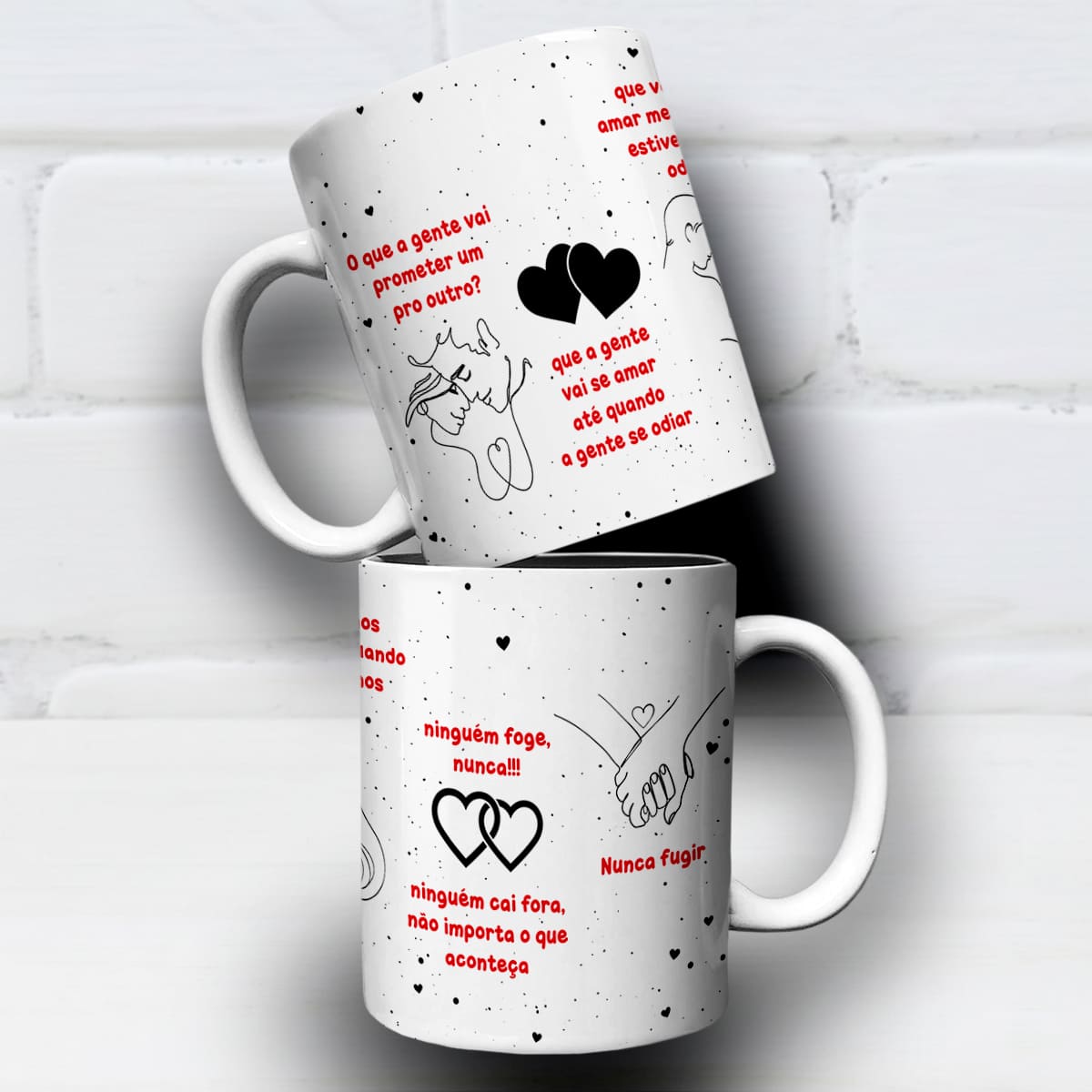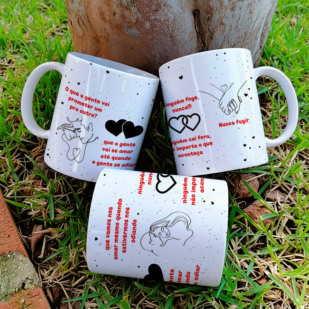 A Arte Para Caneca Greys Anatomy traz as promessas mais icônicas da série: “O que a gente vai prometer um pro outro?”, “que a gente vai se amar até quando a gente se odiar”, “ninguém foge, nunca”, “Nunca fugir”.