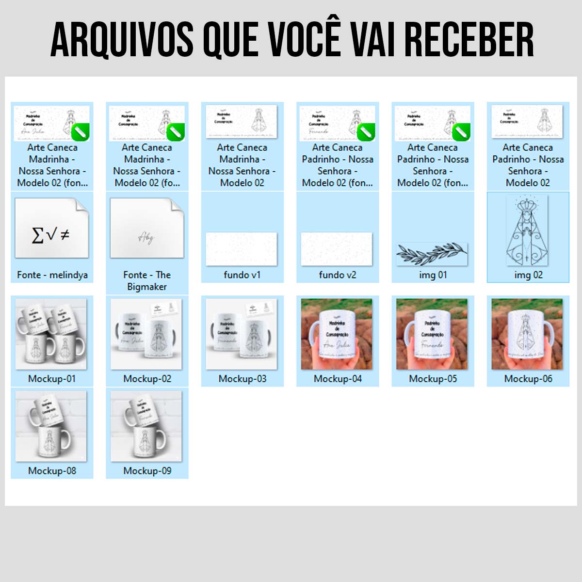 O profissional de sublimação que entende o comportamento do cliente sai na frente. Em datas religiosas e celebrações de consagração, a busca por lembranças personalizadas aumenta significativamente. A arte para caneca madrinha e padrinho de consagração com santa foi desenvolvida exatamente para atender esse nicho.