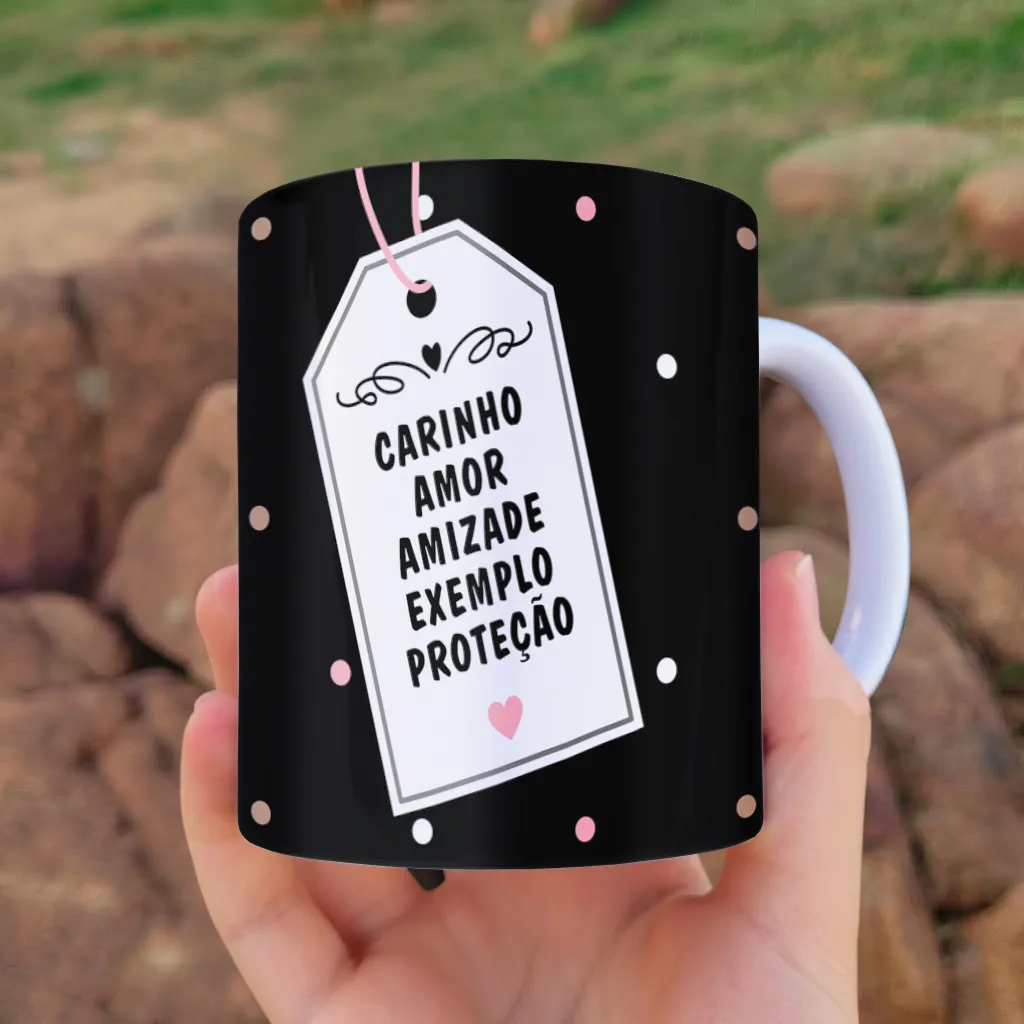 Esse tipo de construção visual não apenas embeleza a caneca, mas transforma o produto em uma opção de presente com forte apelo emocional, facilitando a decisão de compra do seu cliente.