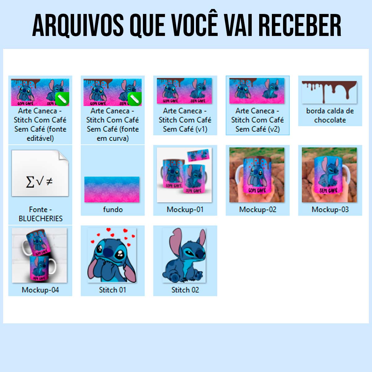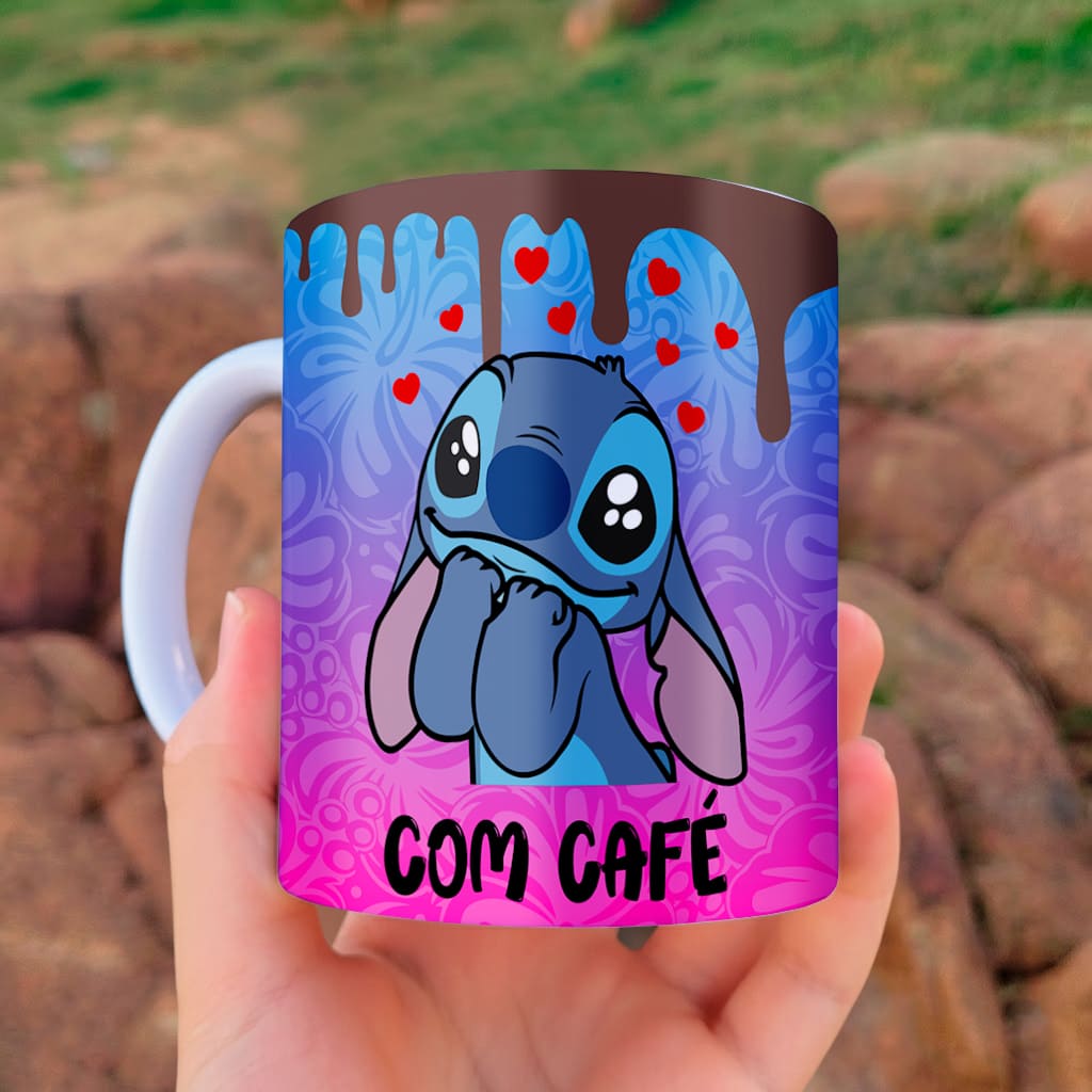 Arte Para Caneca Stitch Com Café Sem Café – Arquivo Digital Sublimação | PNG e Corel Editável