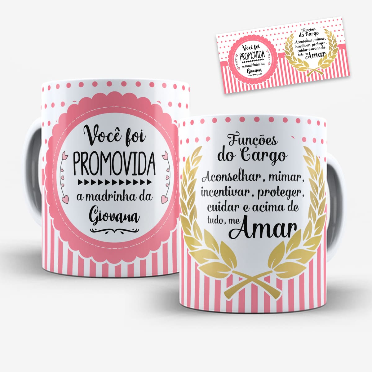 Arte Para Caneca Você Foi Promovida a Madrinha e Padrinho (2 Versões) – Arquivo Digital Sublimação